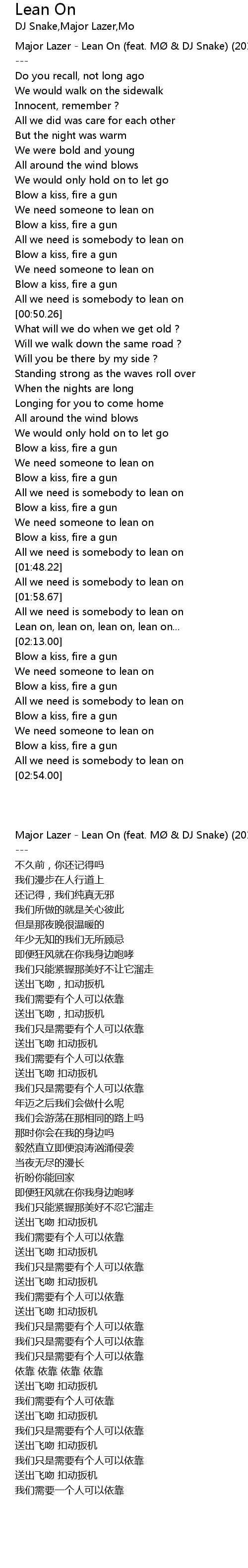 | [02:08.05] | Lean on, lean on, lean on, lean on... |