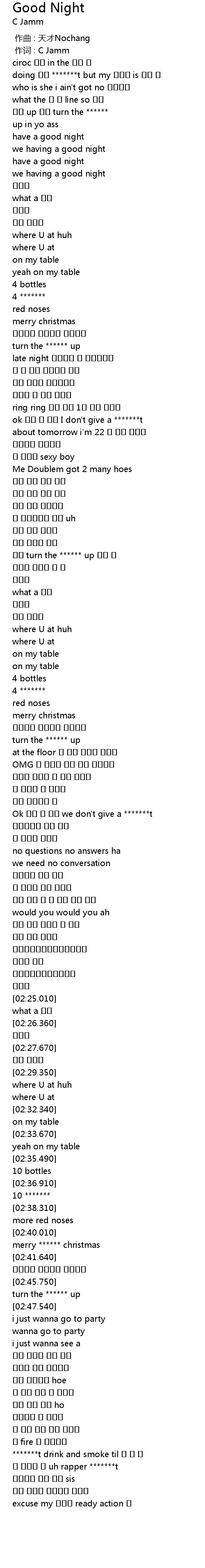 | [03:04.790] | *******t drink and smoke til 해 뜰 때 |