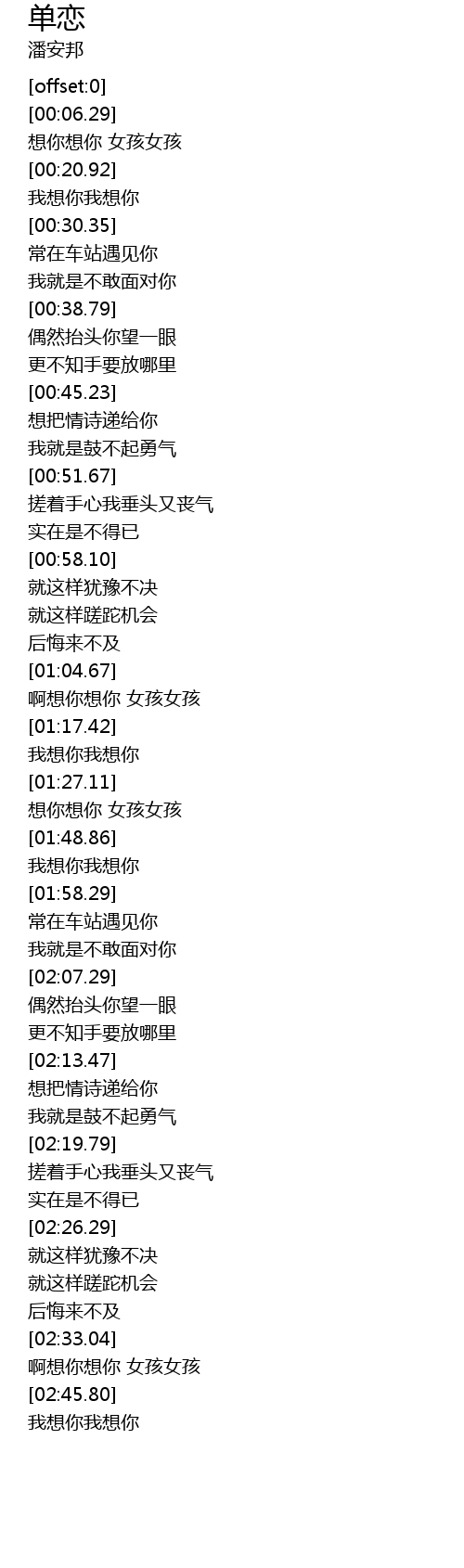 | [01:42.54] | 想你想你 女孩女孩 |