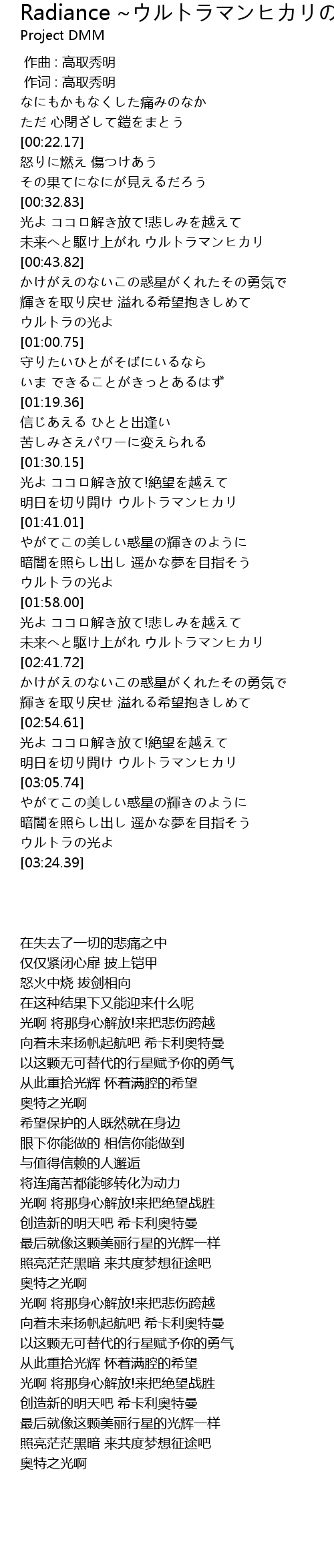 | [03:01.42] | 明日を切り開け ウルトラマンヒカリ |