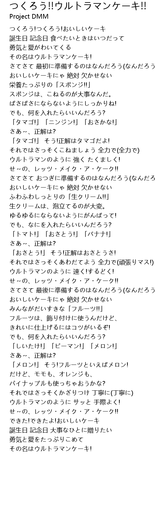 | 歌曲 | つくろう!!ウルトラマンケーキ!! |