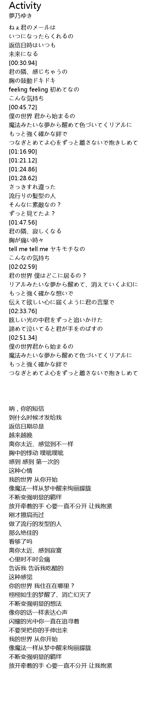 | [02:03.00] | 君の世界 僕はどこに居るの? |