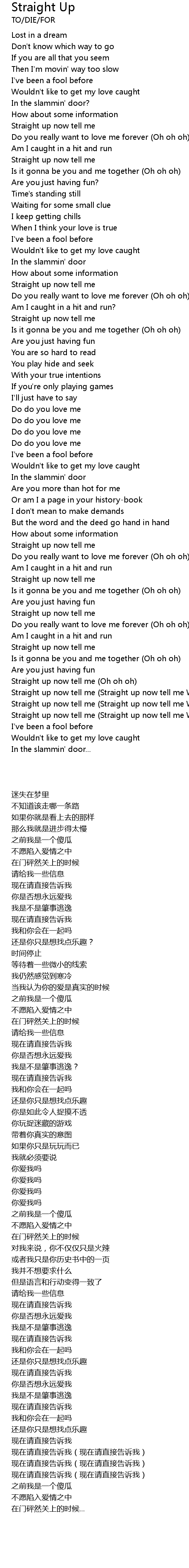 Straight up now tell me (Straight up now tell me Wo ho) |