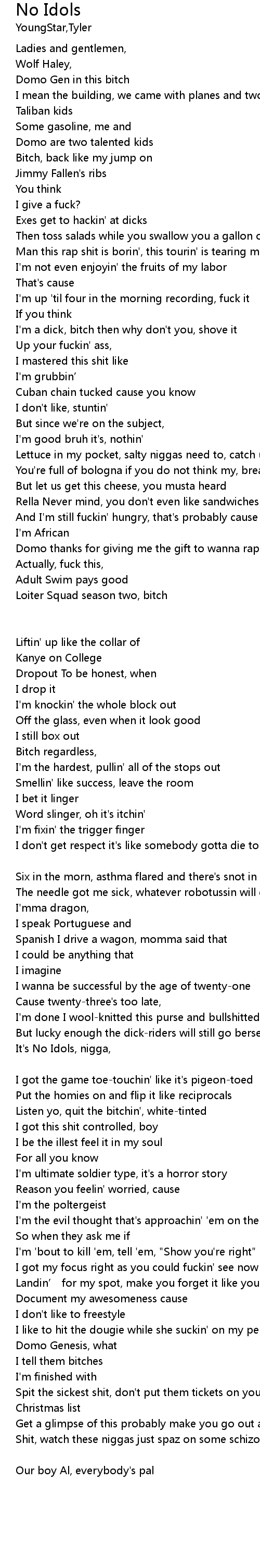 | Type to hit my special five times in a title fight Verse 3: Tyler the Creator | |