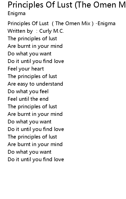 | 歌曲 | Principles Of Lust (The Omen Mix) |