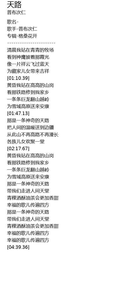 | [01:39.17] | 为雪域高原送来安康 |