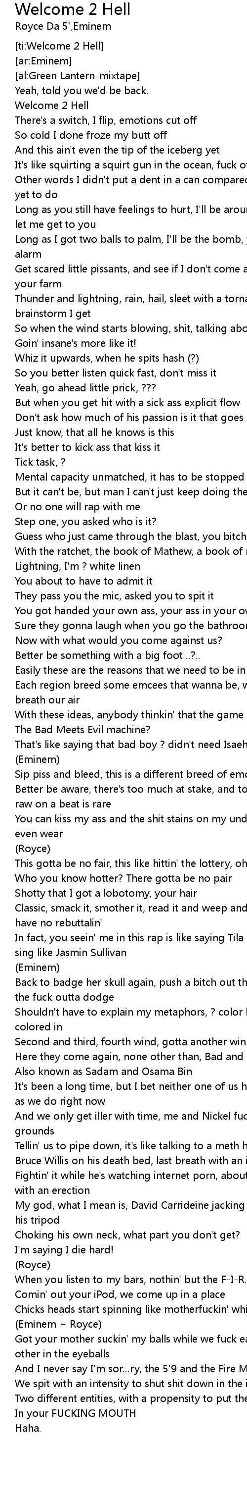 [ti:Welcome 2 Hell]