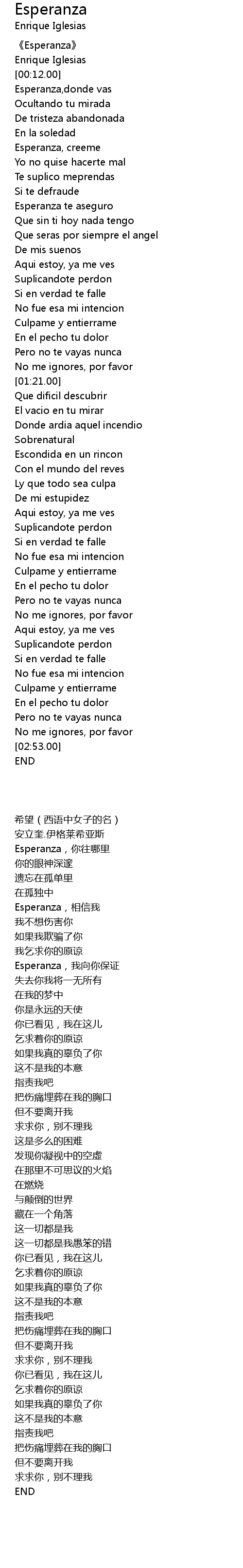 | [00:10.00] | 安立奎.伊格莱希亚斯 |