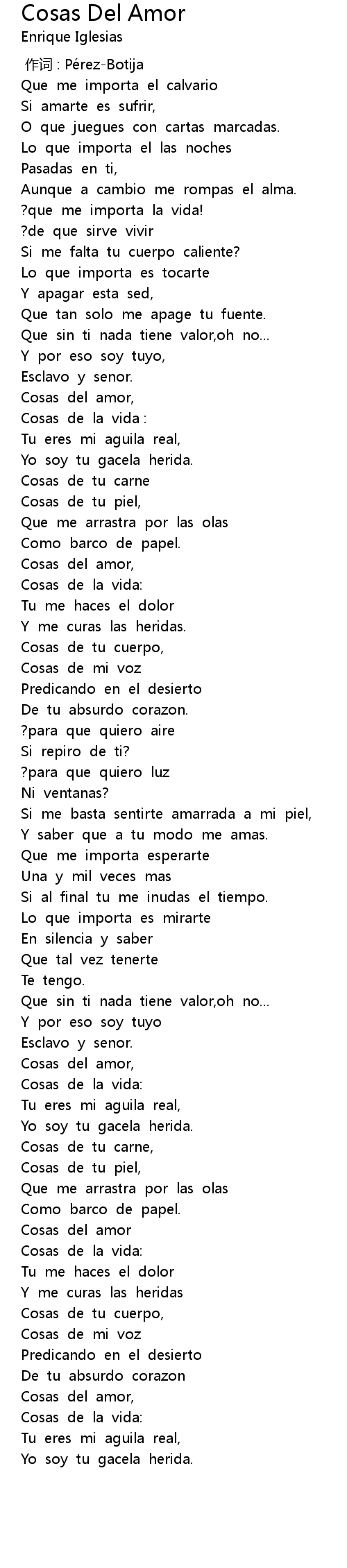 | 歌曲 | Cosas Del Amor |