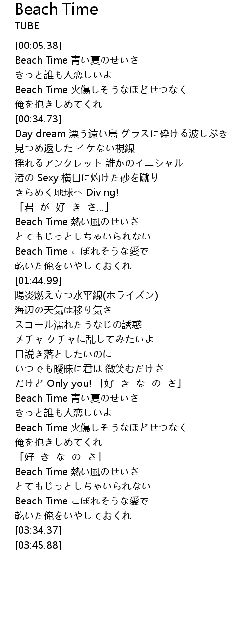 | [03:17.74] | Beach Time こぼれそうな愛で |