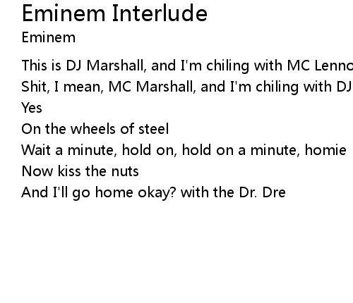| [00:03.540] | Shit, I mean, MC Marshall, and I'm chiling with DJ Lennox |