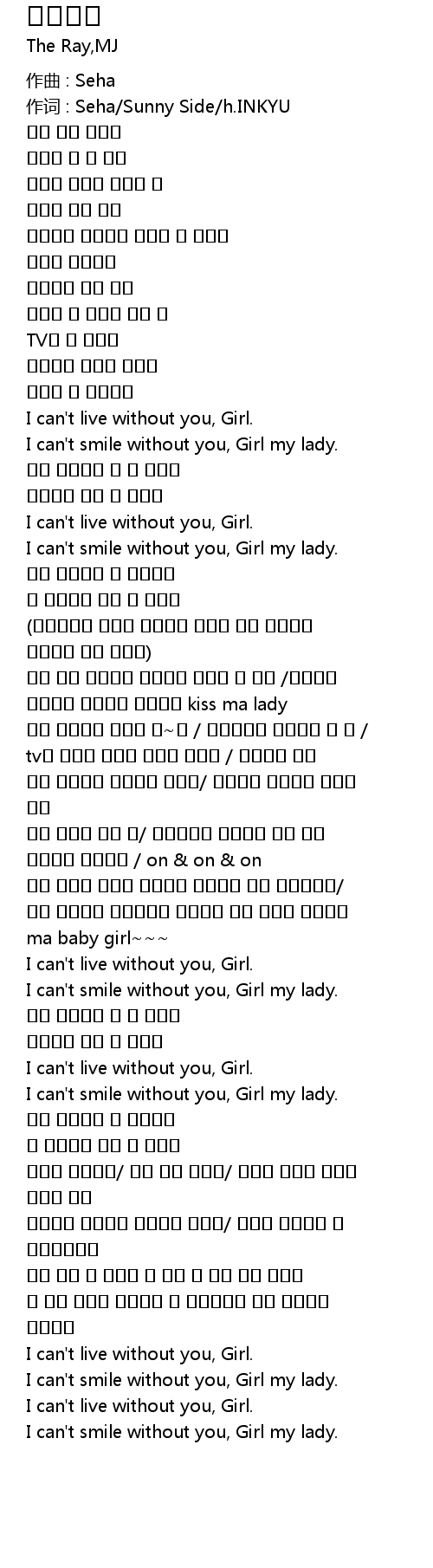 문을 열고 들어서면 방안에선 니모습 난 보여 /왜이렇게 늦었냐며 애교석인 목소리로 kiss ma lady |