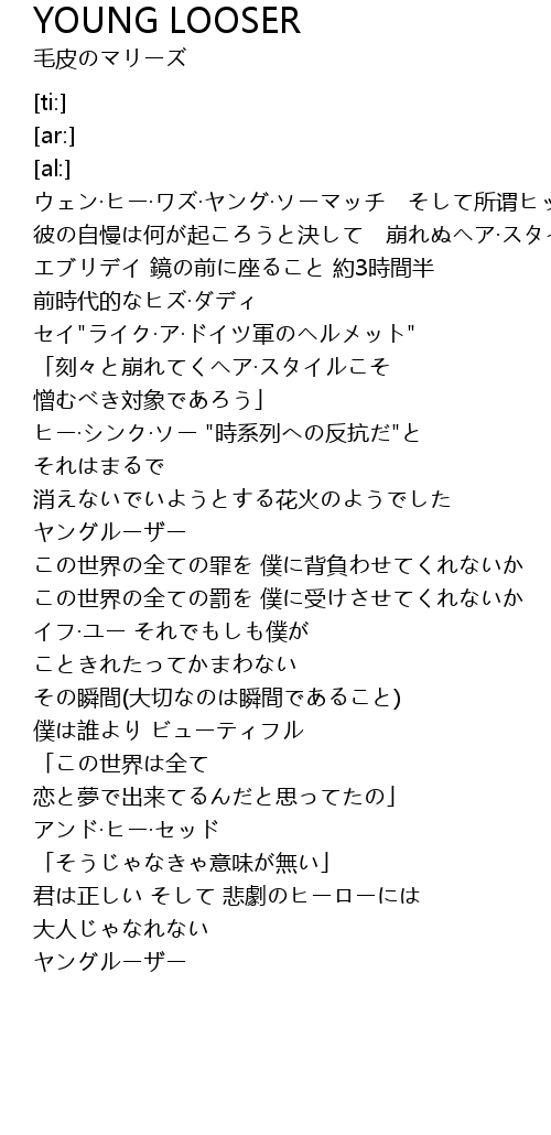 | [02:40.20] | 君は正しい そして 悲劇のヒーローには 大人じゃなれない |
