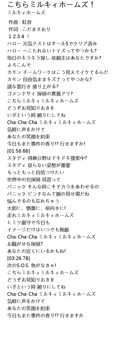 | [02:57.58] | 走れミルキィミルキィホームズ |