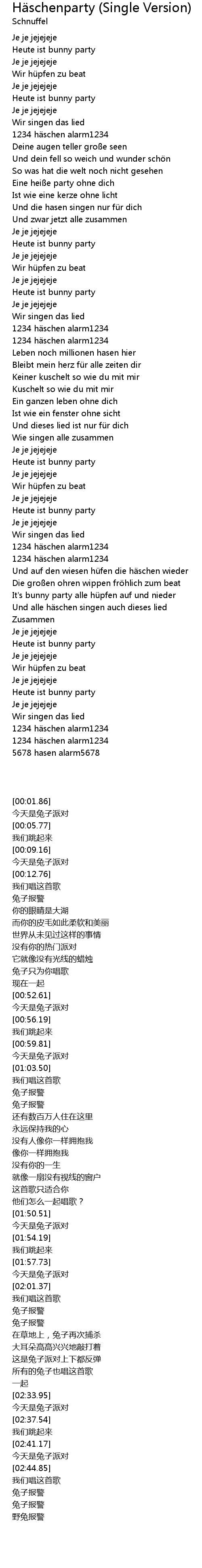 | [02:26.73] | It's bunny party alle hüpfen auf und nieder |