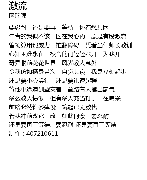 | [02:12.73] | hái shì yào zài sān děng dài yào rěn nài hái shì yào zài sān děng dài zhì zuò: 407210611 |
