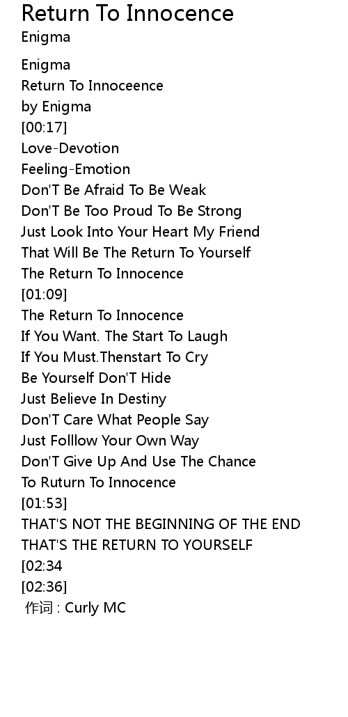 | 歌曲 | Return To Innocence |