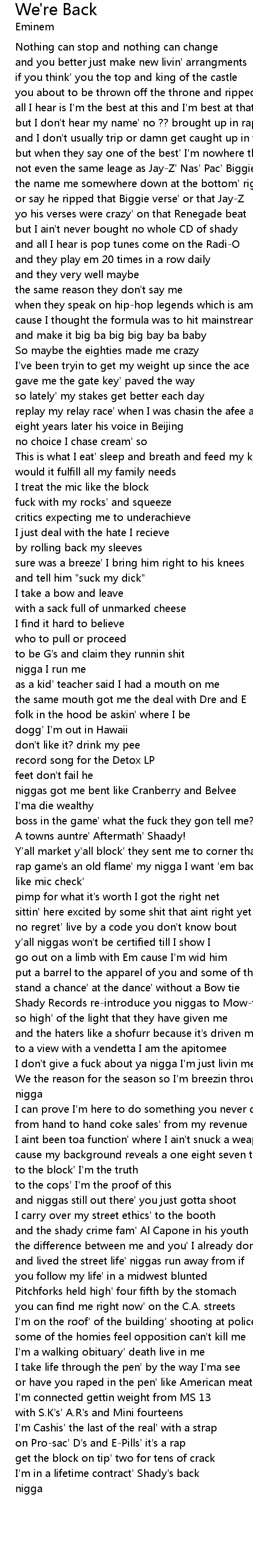 I've been tryin to get my weight up since the ace Slim Shady |
