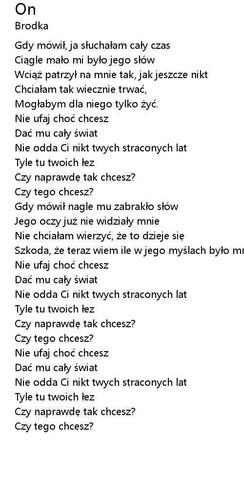 | [00:22.14] | Ci gle ma o mi by o jego só w |