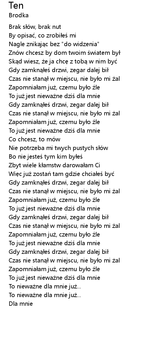| [03:04.47] | To niewa ne dla mnie ju... |