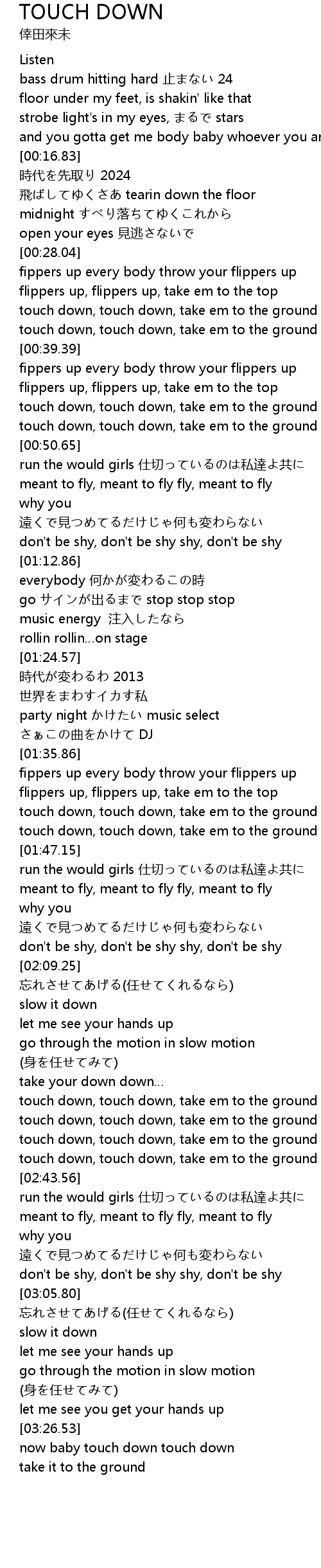 | [00:45.17] | touch down, touch down, take em to the ground |