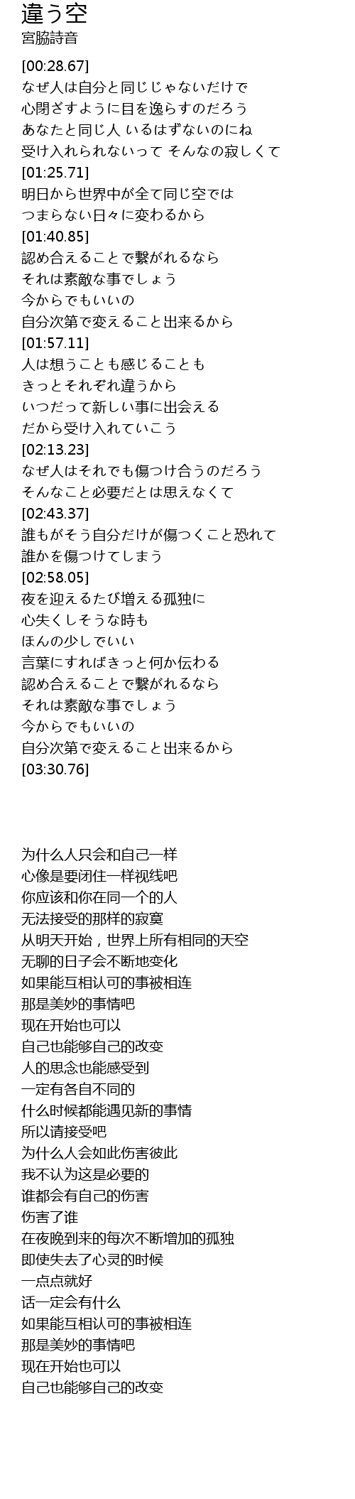 | [00:56.08] | なぜ人は自分と同じじゃないだけで |
