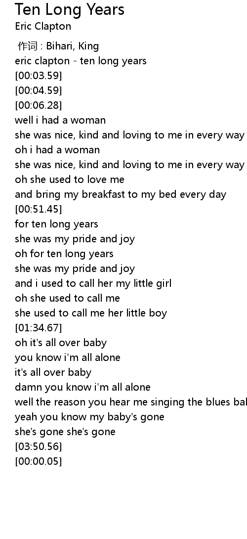 | [00:01.02] | eric clapton ten long years |