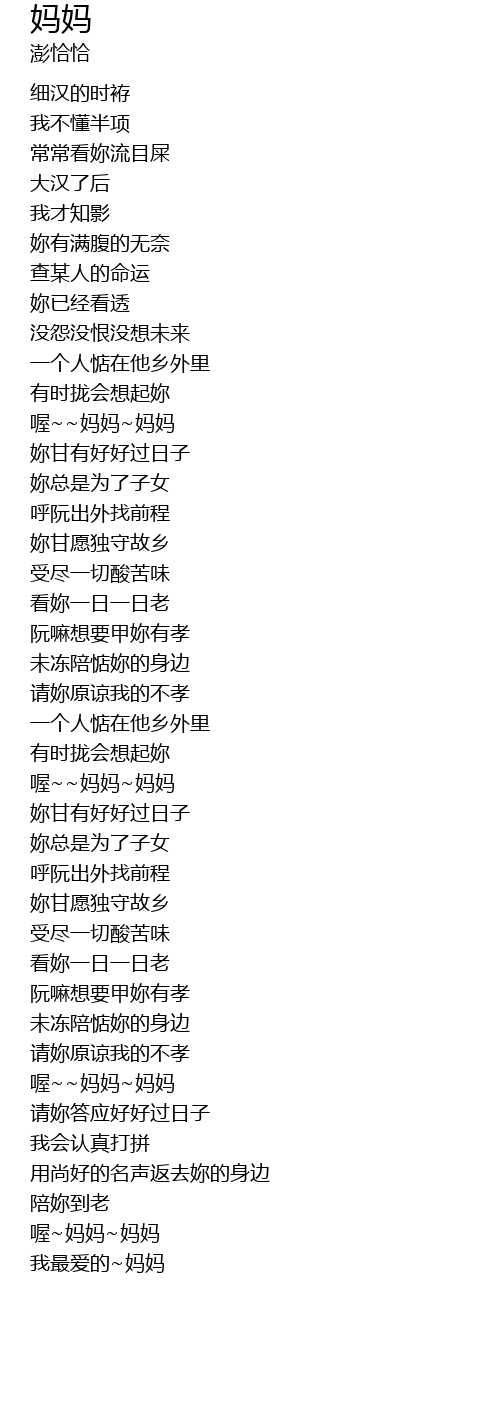 | [04:38.34] | 喔~妈妈~妈妈 |