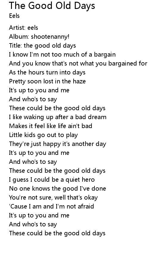 Title: the good old days |