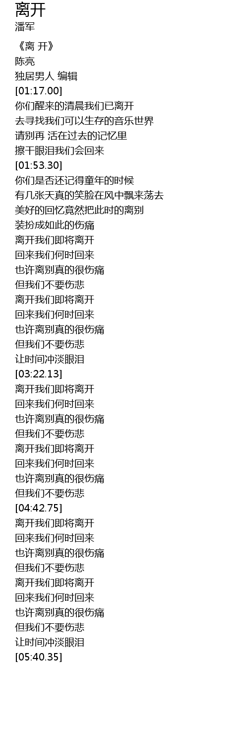 | [04:25.10] | li kai wo men ji jiang li kai |