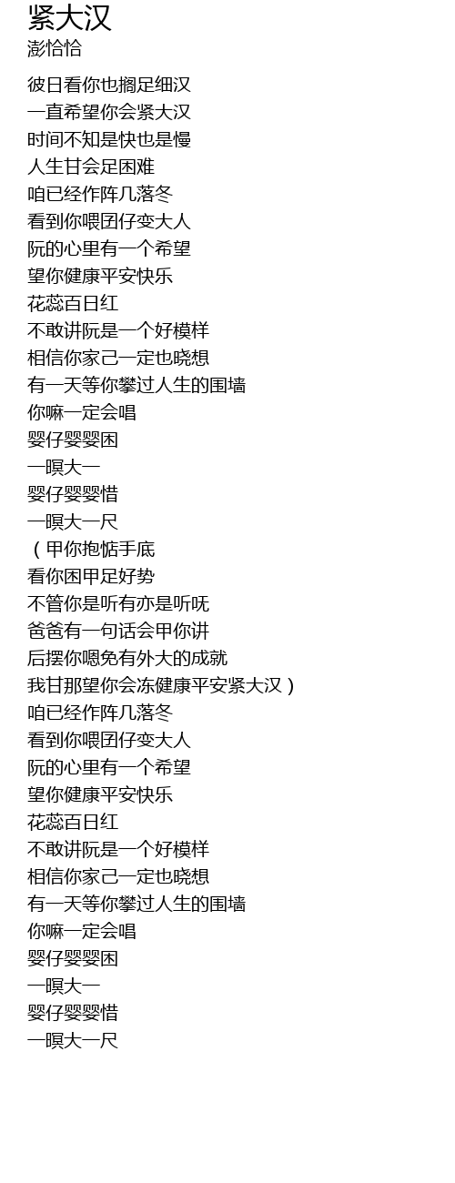 | [02:41.01] | 我甘那望你会冻健康平安紧大汉) |