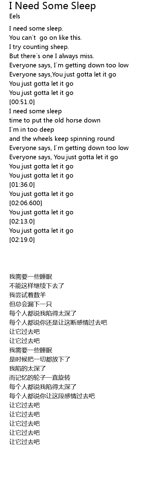 | 歌曲 | I Need Some Sleep |