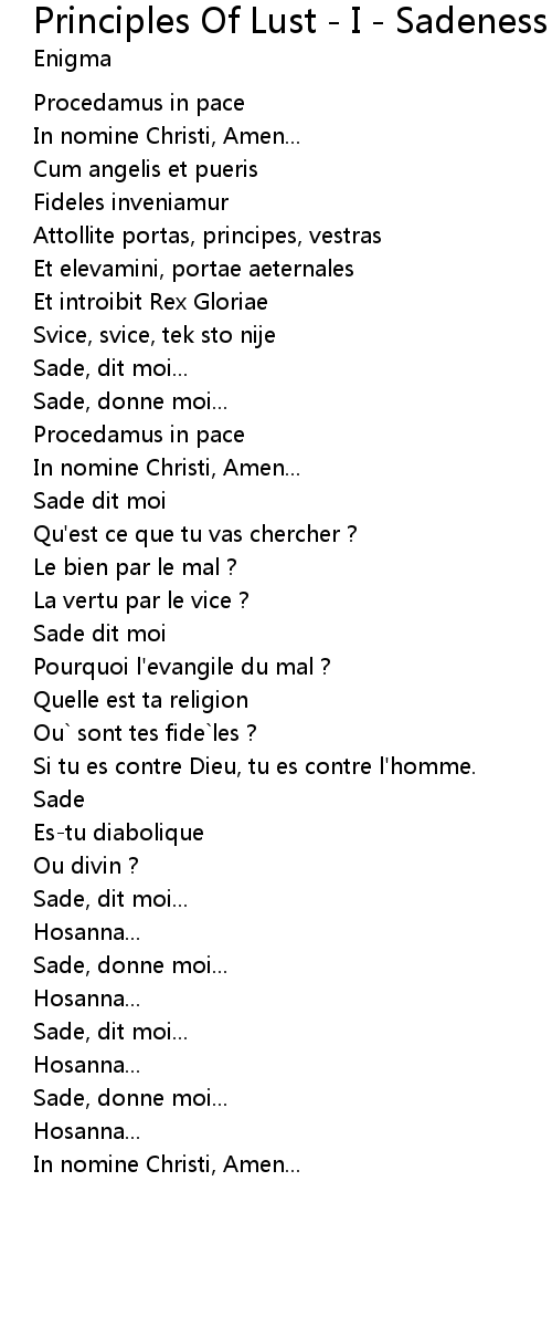 Sade, donne moi... |