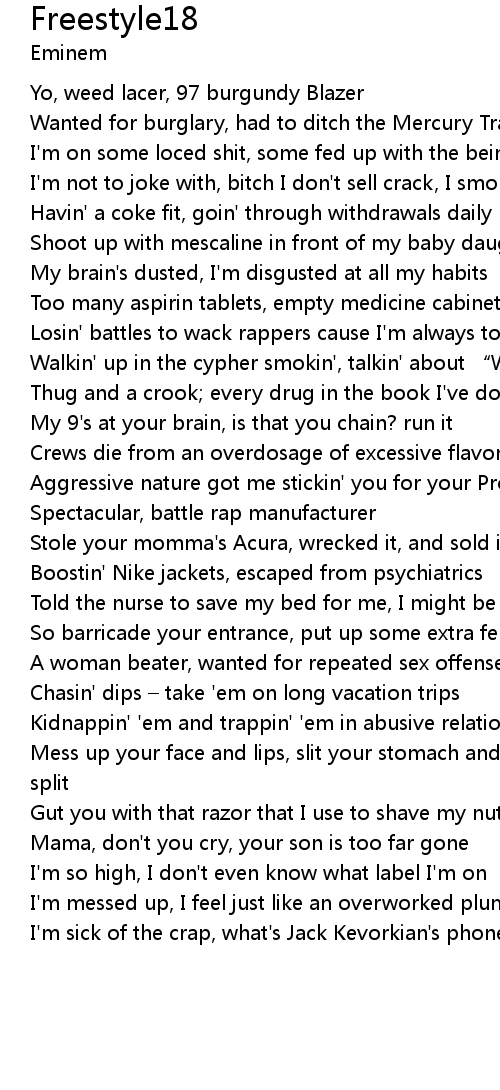 | [00:21.157] | Losin' battles to wack rappers cause I' m always too blunted |