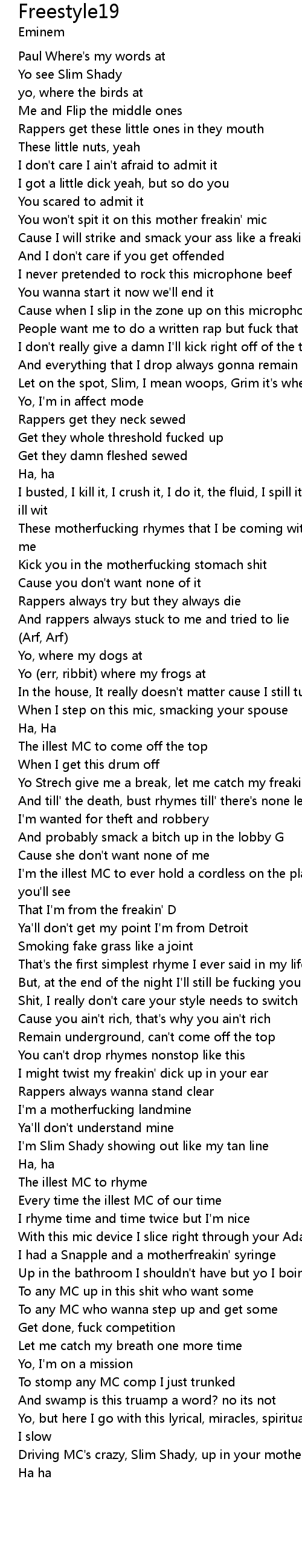 Driving MC's crazy, Slim Shady, up in your motherfucking radio baby |