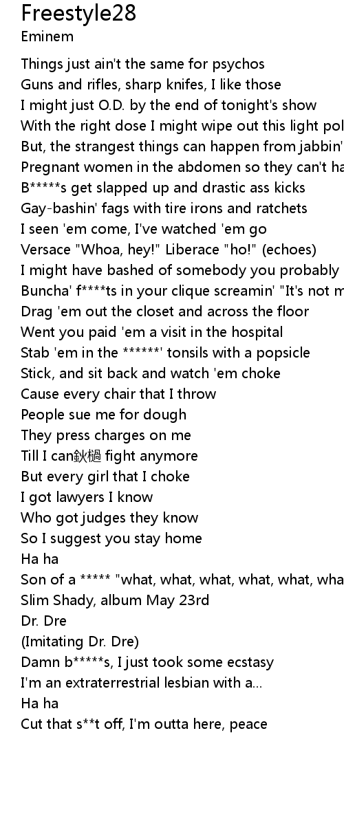 | [00:17.541] | B*****s get slapped up and drastic ass kicks |