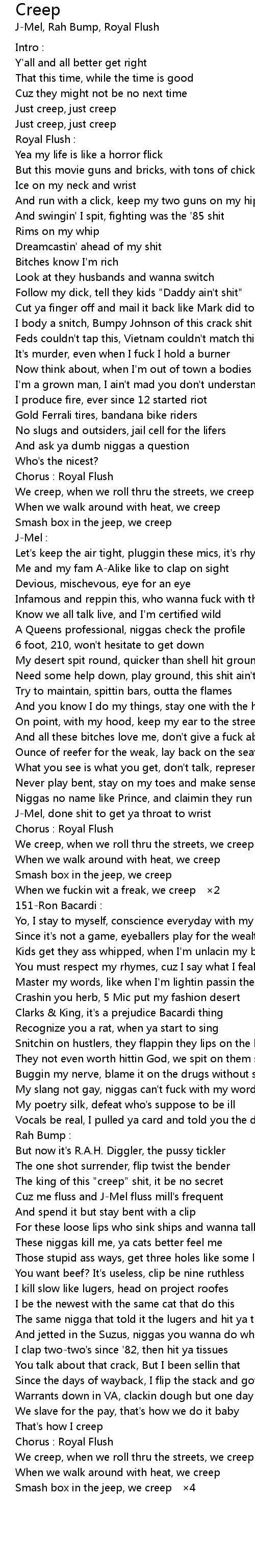 | [00:58.18] | We creep, when we roll thru the streets, we creep |