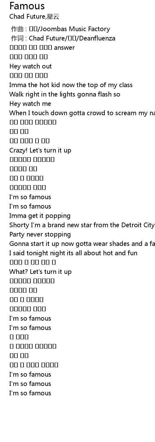 | [00:28.300] | When I touch down gotta crowd to scream my name wow |