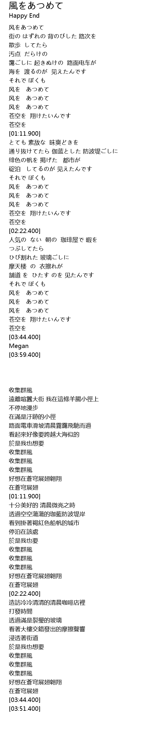| [03:25.400] | 风を あつめて |