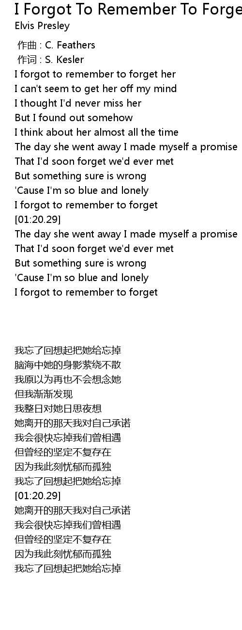| [01:09.29] | I forgot to remember to forget |