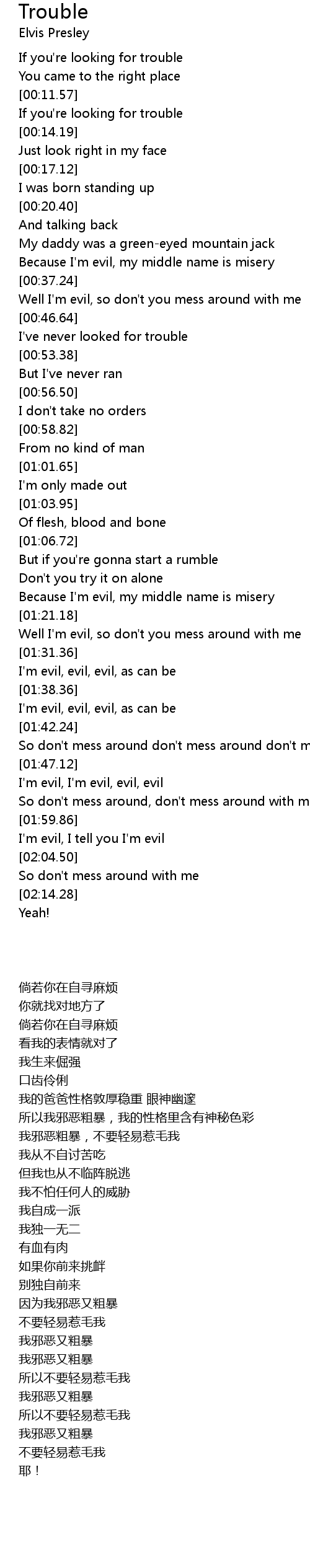 Because I'm evil, my middle name is misery |