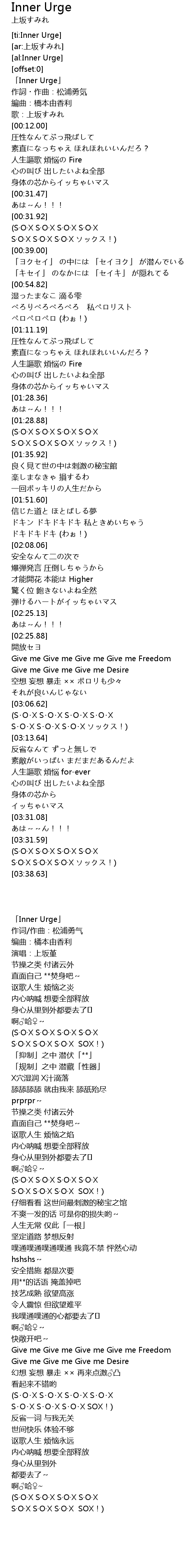 | [00:00.00] | 「Inner Urge」 |