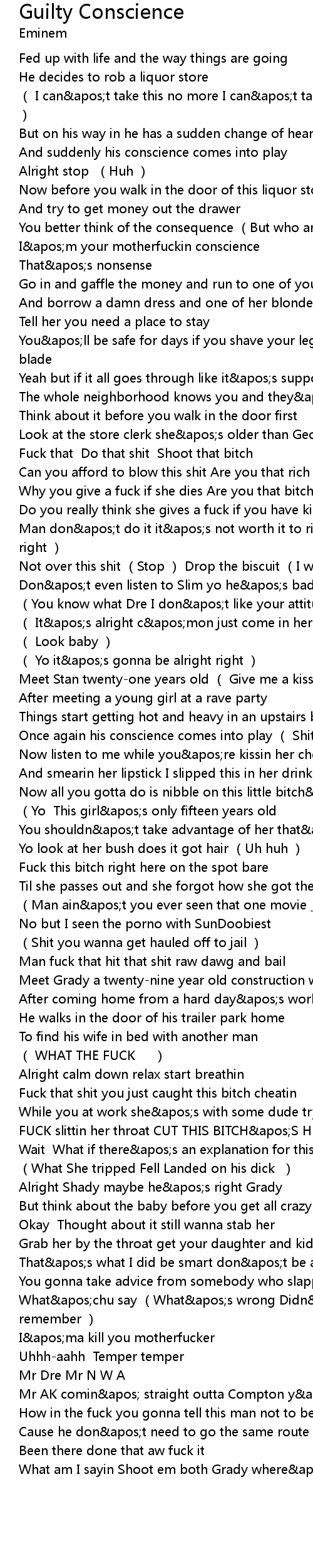 | [00:24.76] | I apos m your motherfuckin conscience |