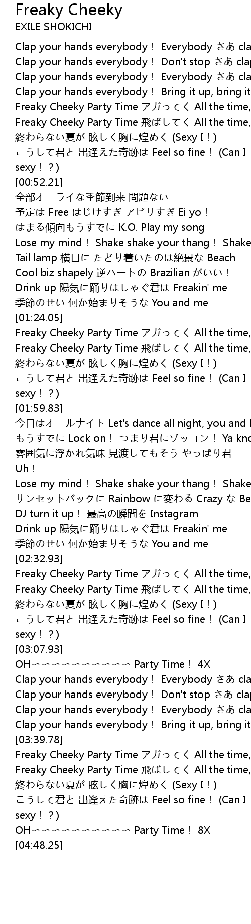 | [03:44.18] | Freaky Cheeky Party Time All the time, Yeah uh huh! |