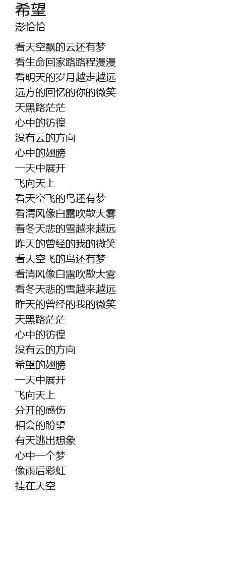 | [01:43.74] | 看天空飞的鸟还有梦 |