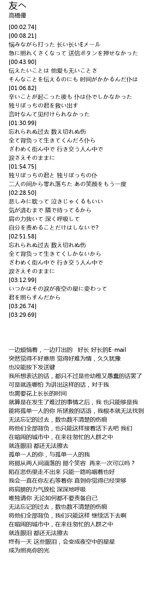 | [00:23.46] | 悩みながら打った 长い长いEメール |
