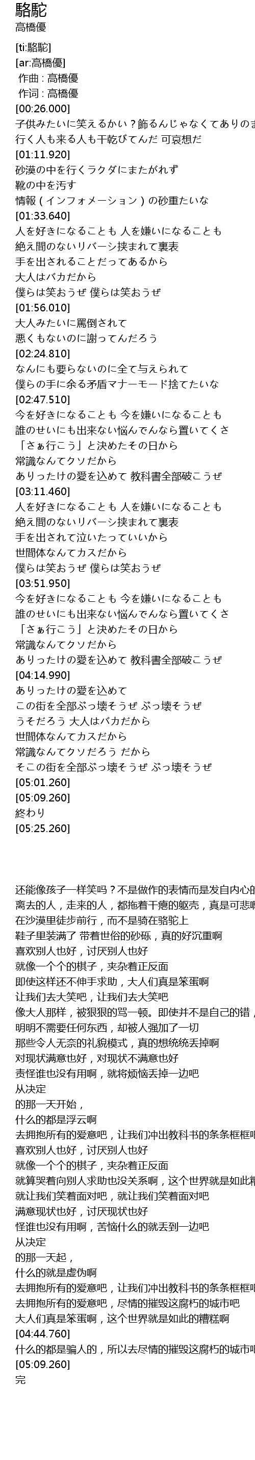 | [01:12.620] | 砂漠の中を行くラクダにまたがれず |