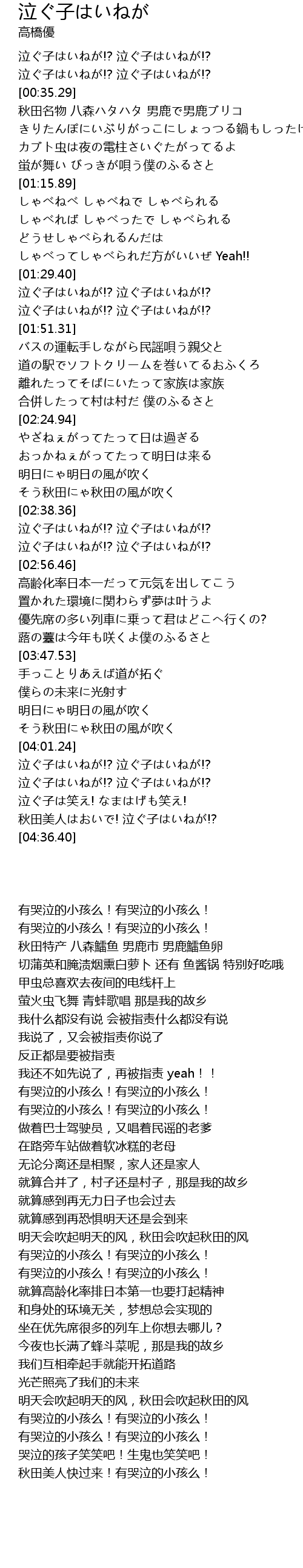 | [04:15.94] | 泣ぐ子は笑え! なまはげも笑え! |