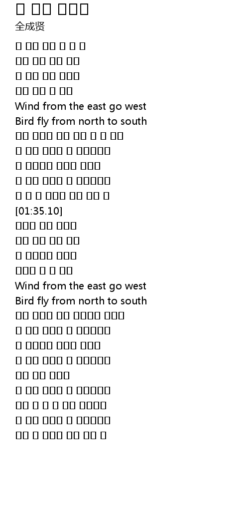 | [00:47.38] | Wind from the east go west |