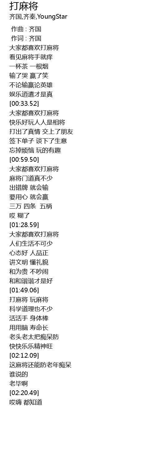 | [00:33.97] | 大家都喜欢打麻将 |